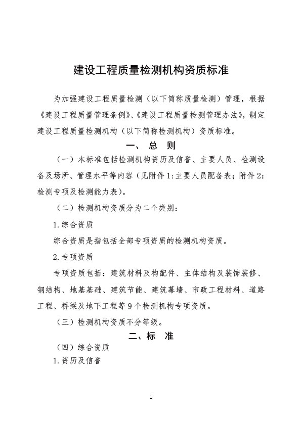 現將《建設工程質量檢測機構資質標準》印發給你們,請遵照執行。